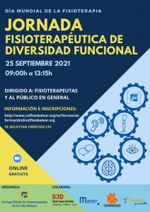 El 25 de septiembre es el Día Internacional de la Fisioterapia y, para conmemorarlo, el Colegio Oficial de Fisioterapeutas de las Islas Baleares (COFIB) ha organizado la Jornada Fisioterapéutica de Diversidad Funcional. Un acto que contará con la participación de Elvira Ripoll, fisioterapeuta de nuestro servicio de Atención Temprana