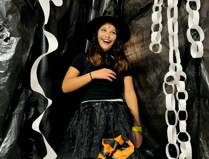 con pintacaras de temática «Halloween»,