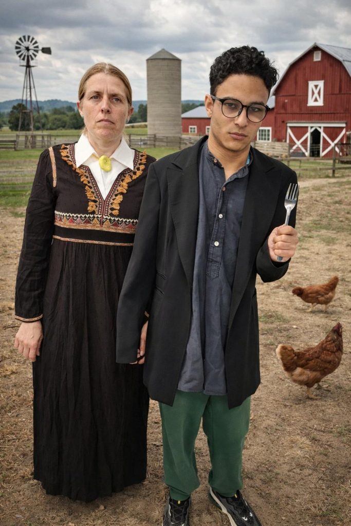 és una recreació de American Gothic, de Grant Wood.